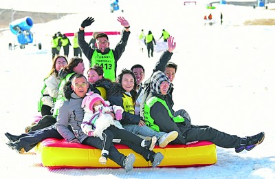 游客在內(nèi)蒙古烏蘭察布市大河灣滑雪場(chǎng)參加趣味冰雪運(yùn)動(dòng)。新華社發(fā)