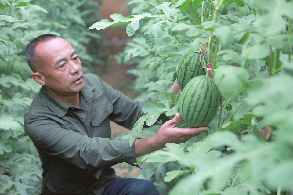 從西紅柿、香瓜到西瓜,合作社基地在周邊積累了穩(wěn)定客源,形成“采摘經(jīng)濟(jì)”與零售批發(fā)雙渠道銷售模式。定襄縣農(nóng)業(yè)技術(shù)服務(wù)中心賈明山介紹,近年來,定襄縣依托晝夜溫差大、光照充足的氣候優(yōu)勢,通過土地流轉(zhuǎn)整合資源,推廣“合作社+基地+農(nóng)戶”經(jīng)營模式。為了引導(dǎo)農(nóng)民發(fā)展設(shè)施農(nóng)業(yè),解決村中富余勞動力,縣農(nóng)業(yè)農(nóng)村局去年投入60余萬元,對全縣30余座老舊大棚進(jìn)行了改造。僅邢俊成的合作社就吸納了周邊20余戶村民就業(yè),從整地、育苗、授粉到采摘,每個(gè)環(huán)節(jié)都成了當(dāng)?shù)剞r(nóng)戶的“增收點(diǎn)”。