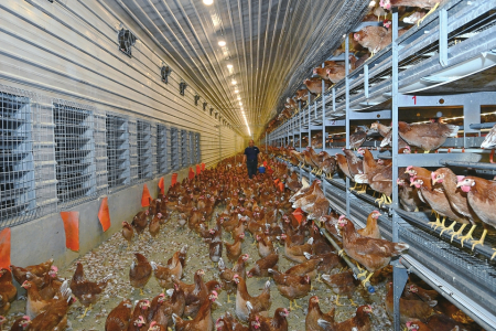 偏關縣坐落于我省西北部冷涼山區(qū),空氣清新、水源干凈、土壤優(yōu)質,這實打實的“生態(tài)家底”為優(yōu)質蛋品孕育提供了天然溫床,永奧生態(tài)農業(yè)于2019年應時落戶偏關縣窯頭鄉(xiāng)張家山村,建起高標準規(guī)模化非籠養(yǎng)蛋雞養(yǎng)殖基地——70畝蛋雞農場里,20萬只蛋雞正享受著立體棲架式散養(yǎng)系統(tǒng)帶來的“自由生活”。養(yǎng)殖基地內采食、飲水、糞便處理全流程自動化,環(huán)境控制系統(tǒng)精準調控溫濕度,蛋雞享有寬敞的活動空間,可自由覓食、沙浴,飼料則以當?shù)厥a的雜糧副產品為主?!半u群心情好,產的蛋自然優(yōu)質?!惫究偨?jīng)理劉開永笑著說。