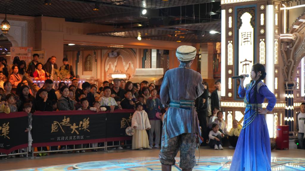 身穿漢代服飾的演員,穿行于充滿古香古色的仿漢代建筑群中,和游客交流互動、合影留念,帶領(lǐng)大家沉浸式體驗歷史書上的漢代生活……走進位于甘肅省蘭州市七里河區(qū)的蘭州中心地下一層,便進入了“風起大漢”沉浸式演藝街區(qū)。