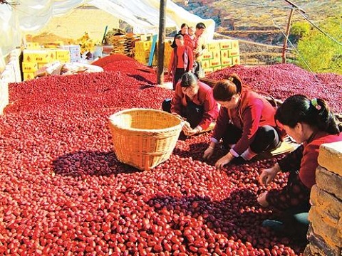 近年來,臨縣縣委、縣政府大力實施紅棗品牌發(fā)展戰(zhàn)略,不斷提升加工轉(zhuǎn)化能力,將棗樹確定為“縣樹”,設(shè)立紅棗產(chǎn)業(yè)局,創(chuàng)立“臨縣紅棗”公共品牌,出臺了支持紅棗產(chǎn)業(yè)發(fā)展的15項優(yōu)惠政策,初步形成了“生產(chǎn)有基地、加工有龍頭、銷售有網(wǎng)絡(luò)、政策有傾斜”的紅棗產(chǎn)業(yè)發(fā)展格局。通過書記、縣長為紅棗代言,舉辦紅棗旅游文化節(jié)、紅棗電商論壇,參加國內(nèi)各種博覽會、交易會等推介活動,擴大了臨縣紅棗品牌影響力。目前,臨縣紅棗年產(chǎn)值突破6億元,占全縣農(nóng)業(yè)總產(chǎn)值的42%。棗區(qū)農(nóng)民紅棗收入占人均純收入的70%以上,紅棗產(chǎn)業(yè)已經(jīng)成為全縣農(nóng)民增收的一項主導產(chǎn)業(yè)。