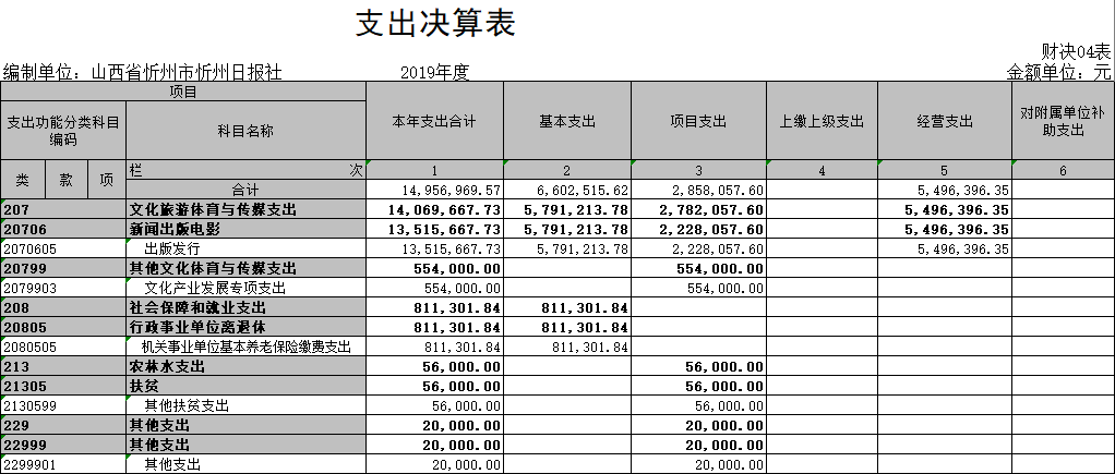 (三)部門決算單位構(gòu)成:忻州日報社是一級預(yù)算單位,無下屬單位。部門預(yù)算只有一個單位,即忻州日報社。