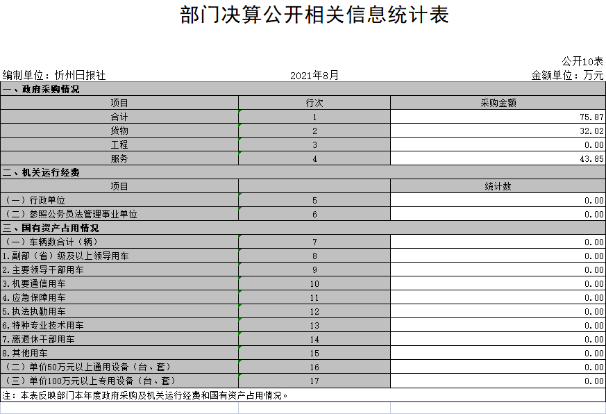 10、部門決算公開相關信息統(tǒng)計表