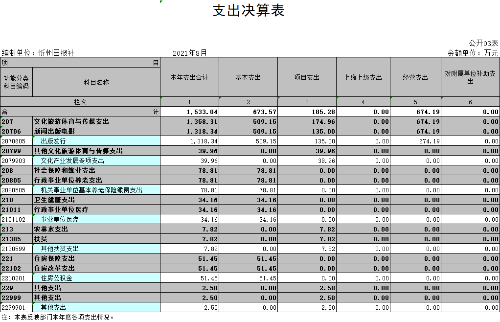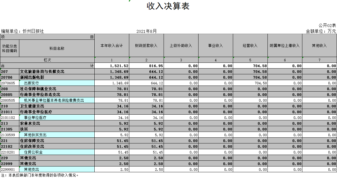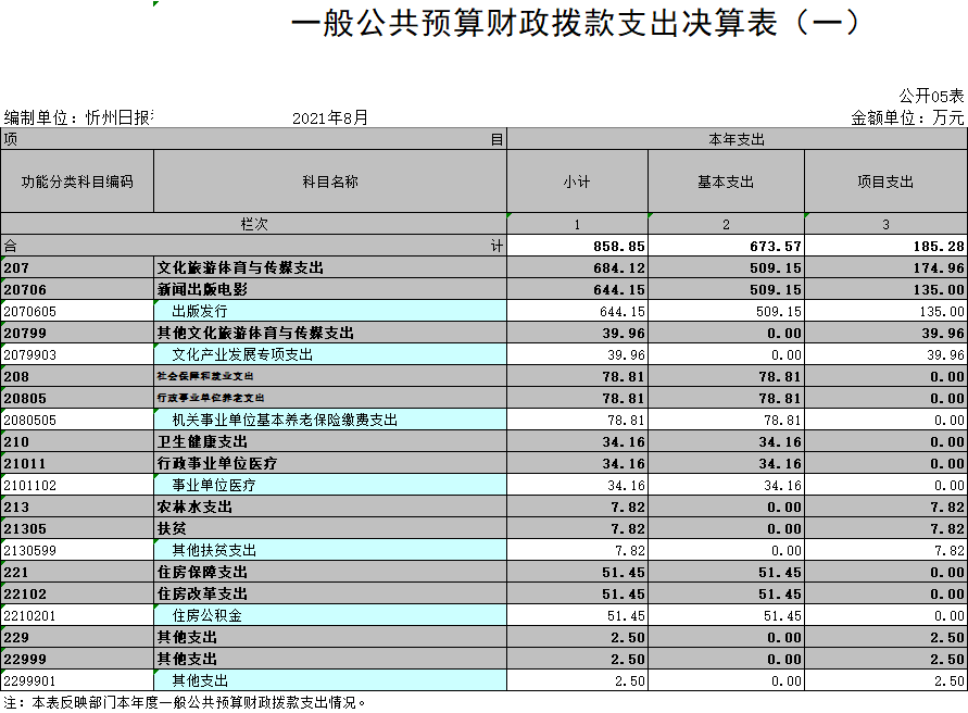 (三)部門決算單位構成:忻州日報社是一級預算單位,無下屬單位。部門預算只有一個單位,即忻州日報社。