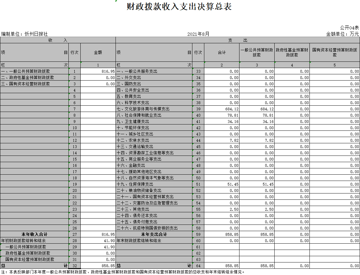 4、2020年財政撥款收入支出決算總表