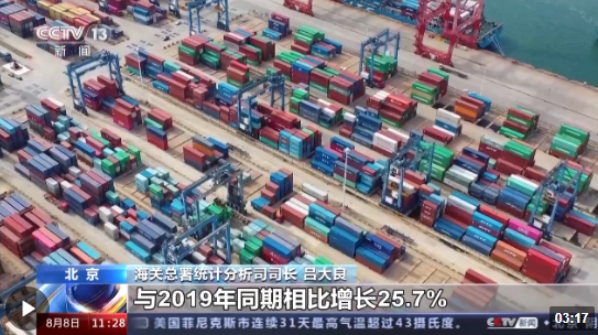海關總署統(tǒng)計分析司司長 呂大良:二季度以來,我國月度進出口規(guī)模穩(wěn)定保持在3.4萬億元以上。7月當月,我國進出口3.46萬億元,處于歷史同期較高水平。與2019年同期相比增長25.7%,與2020—2022年同期均值相比高了4.5%。整體看,我國外貿(mào)進出口運行平穩(wěn),符合預期,長期向好的基本面沒有改變。