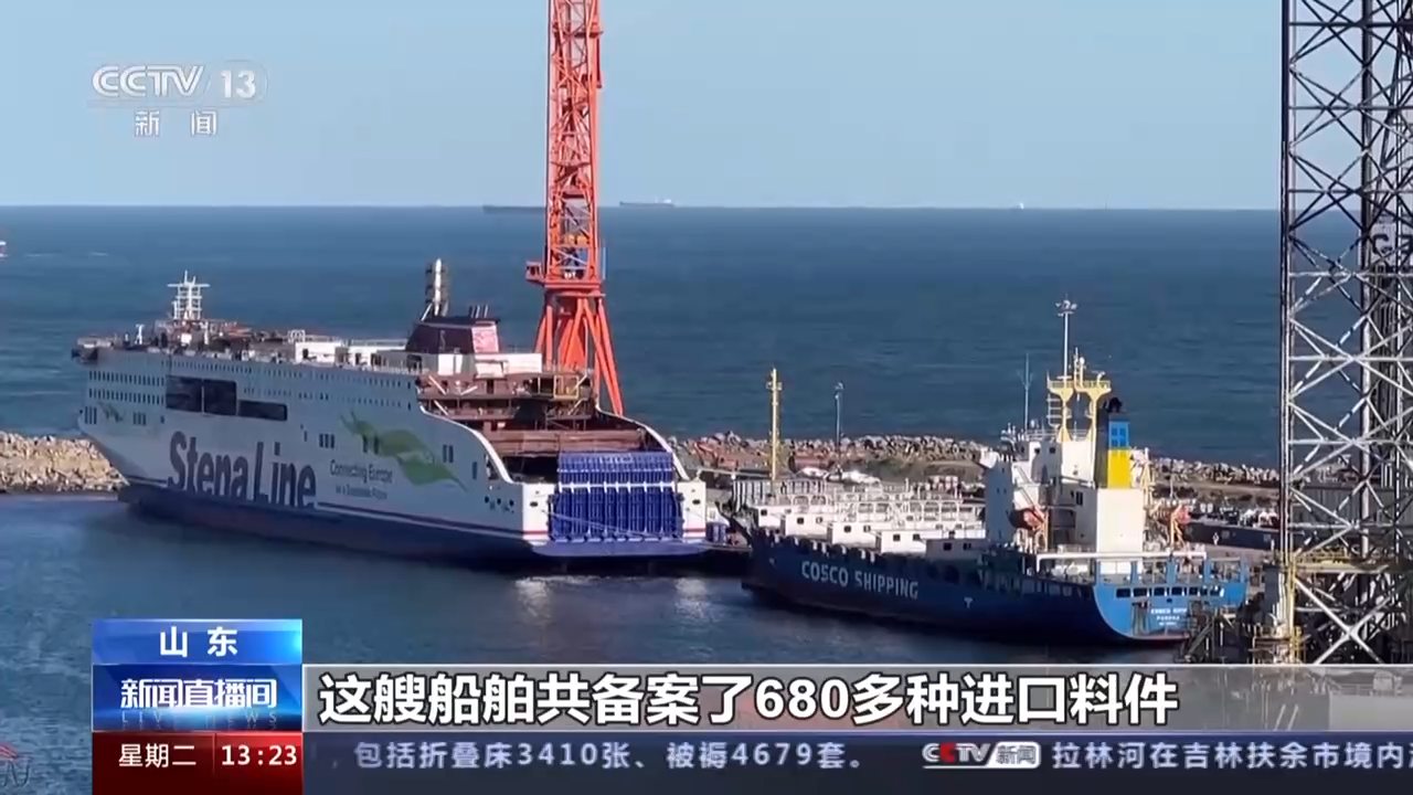 這幾天,山東威海這家造船廠里,工人正在加緊建造一艘油電混合動力高端客滾船,計劃于10月底交付歐洲客戶使用。