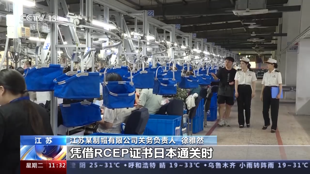 江蘇某制帽有限公司關務負責人徐雅然:我手邊這批即將出口至日本的休閑帽,憑借RCEP證書日本通關時可享受關稅減讓1.6萬元人民幣。