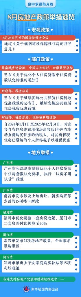 近段時間,相關(guān)部門陸續(xù)釋放地產(chǎn)領(lǐng)域積極政策信號:8月初,中國人民銀行在部署下半年工作時明確提出“繼續(xù)引導(dǎo)個人住房貸款利率和首付比例下行”;近日,住房城鄉(xiāng)建設(shè)部等三部門給出了“認(rèn)房不認(rèn)貸”政策具體實(shí)施標(biāo)準(zhǔn);財(cái)政部還公布了兩項(xiàng)針對房地產(chǎn)市場的稅收優(yōu)惠政策。