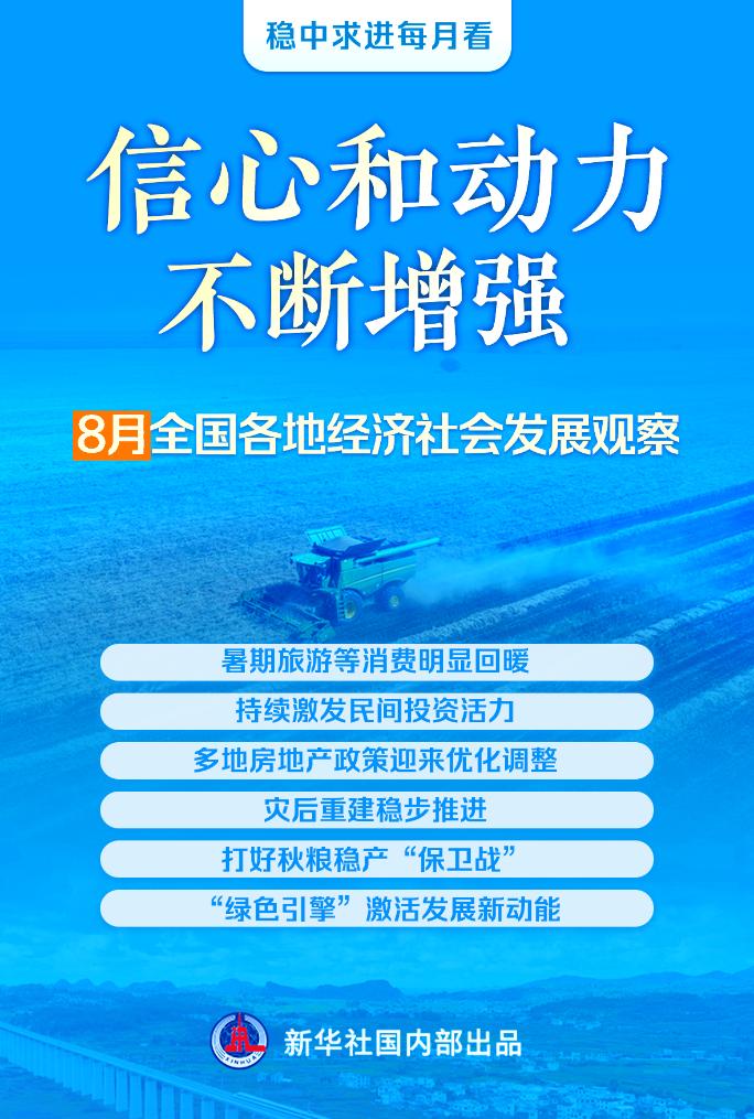 新華社北京8月31日電題:信心和動力不斷增強(qiáng)——8月全國各地經(jīng)濟(jì)社會發(fā)展觀察