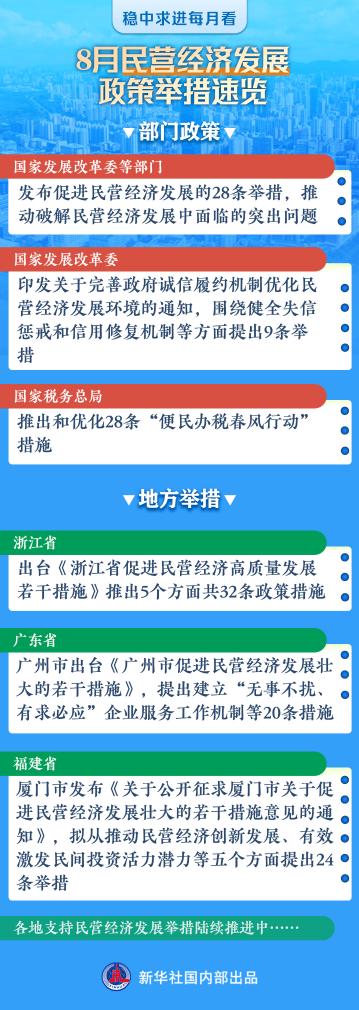 8月份以來,針對民營企業(yè)面臨的痛點(diǎn)、堵點(diǎn)、難點(diǎn),從中央到地方密集推出系列政策舉措,旨在激發(fā)民間投資活力,鼓勵企業(yè)敢闖、敢投、敢擔(dān)風(fēng)險(xiǎn)。