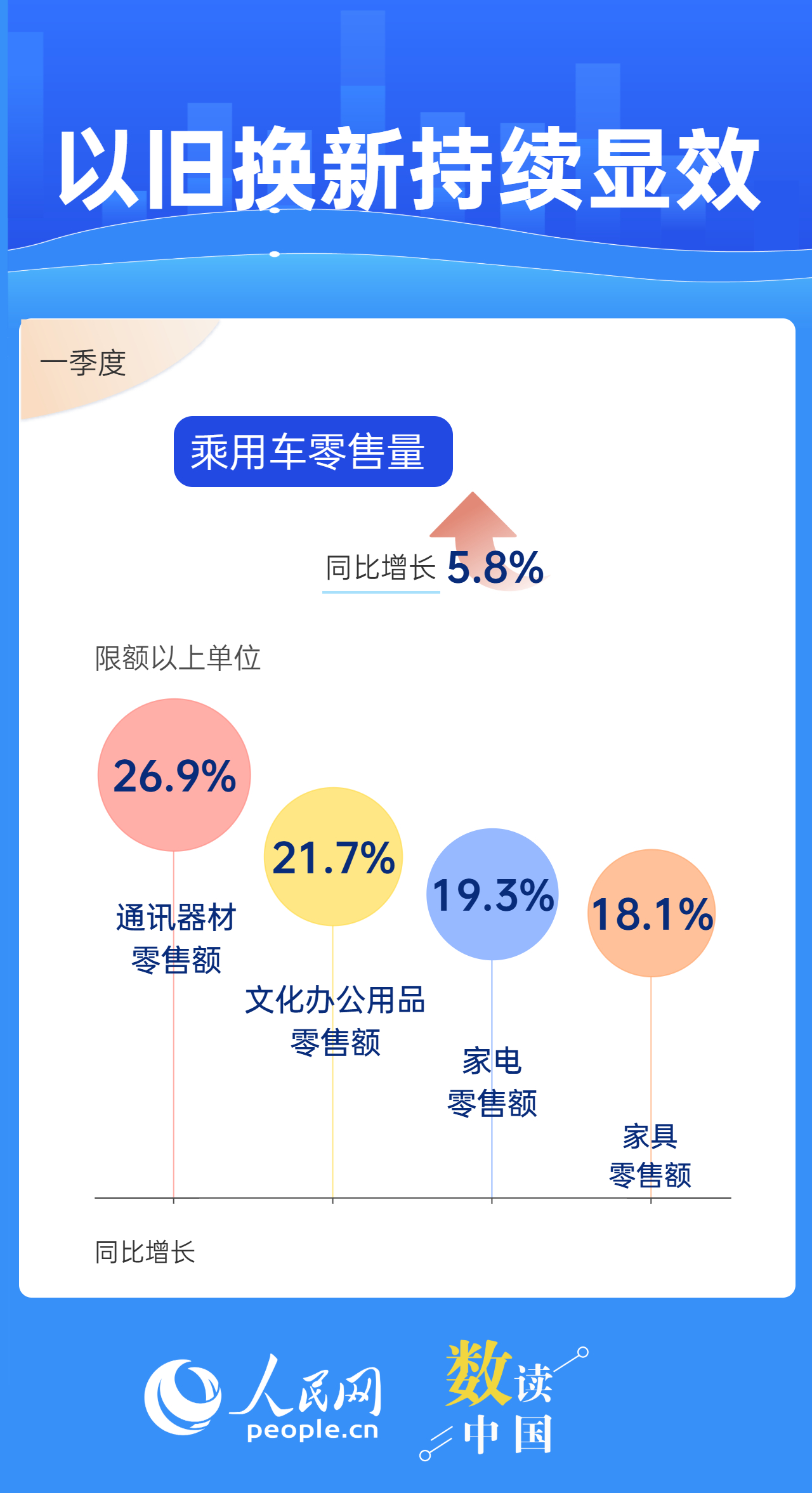 消費不僅關(guān)系民生福祉,也關(guān)系經(jīng)濟(jì)發(fā)展。商務(wù)部近日發(fā)布的數(shù)據(jù)顯示,今年一季度,消費市場總體實現(xiàn)平穩(wěn)開局;我國批發(fā)和零售業(yè)取得良好開局,為擴大國內(nèi)需求、暢通國民經(jīng)濟(jì)循環(huán)提供有力支撐。