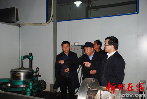 五寨縣信用聯(lián)社理事長(zhǎng)郭俊裕在甚喜茶園食品有限公司揉茶車(chē)間調(diào)研