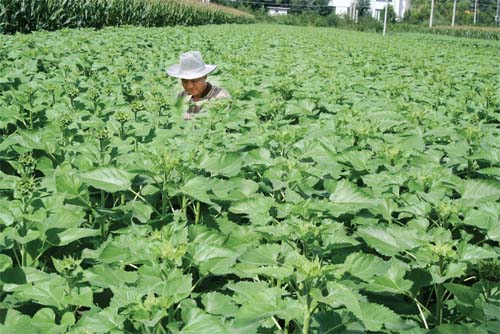 近年來,原平市積極引導農(nóng)民大力發(fā)展特色種植業(yè),有效促進農(nóng)民增產(chǎn)增收,加快致富奔小康。圖為8 月26 日原平市小河村農(nóng)民正在地里管理長勢喜人的墨葵。趙春曉 攝
