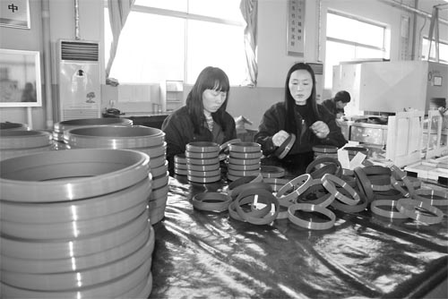 圖為1月21日,原平市泰寶密封有限公司的工人們正在生產(chǎn)加工密封件。該企業(yè)擁有國(guó)際先進(jìn)水平的奧地利無(wú)模密封件生產(chǎn)線,年生產(chǎn)能力達(dá)1200萬(wàn)件。產(chǎn)品行銷東南亞各國(guó)和全國(guó)二十多個(gè)省市,廣泛應(yīng)用于煤炭、石油、冶金、機(jī)械、化工、電力、交通運(yùn)輸?shù)刃袠I(yè)。(褚震 攝)