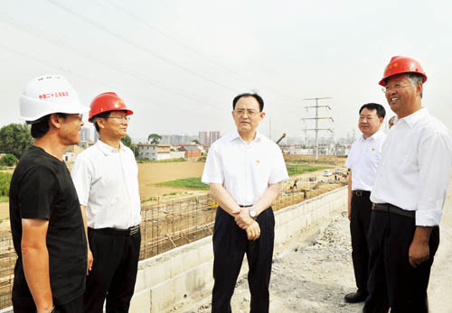 在忻州西站以北的大西客專與忻五公路交叉地段,京太鐵路(雄忻段)引入大西客專施工現(xiàn)場,李俊明詳細(xì)了解大西客專既有線路、雄忻高鐵接軌的近期工程和預(yù)留遠(yuǎn)期規(guī)劃,實(shí)地察看左右進(jìn)出線的路基打樁、擋墻施工、路基幫寬等正在進(jìn)行的工程,聽取各主要節(jié)點(diǎn)工期計(jì)劃安排,詢問工程實(shí)施中的困難問題。