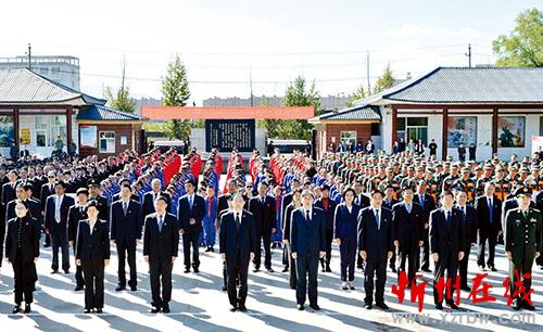 忻州市革命烈士陵園內,翠柏列陣,巍然聳立的紀念碑上“革命烈士永垂不朽”八個大字蒼勁有力。廣場上,部隊官兵、武警官兵、公安干警、應急民兵、學校師生、機關干部、社會團體和志愿者代表等社會各界人士整齊列隊,靜靜肅立。市委、市人大、市政府、市政協(xié)、忻州軍分區(qū),忻府區(qū)委、區(qū)人大、區(qū)政府、區(qū)政協(xié),人民團體和各界群眾敬獻的花籃依次擺放在紀念碑基座前廣場上。