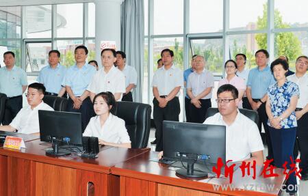 圖為省人大常委會副主任、市委書記李俊明和參會人員在保德縣光伏扶貧電站運維管理中心觀摩。本報記者宮愛文攝