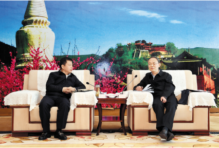 市委書記鄭連生會見山西文旅集團董事長王文保。 本報記者 劉紀(jì)森 攝