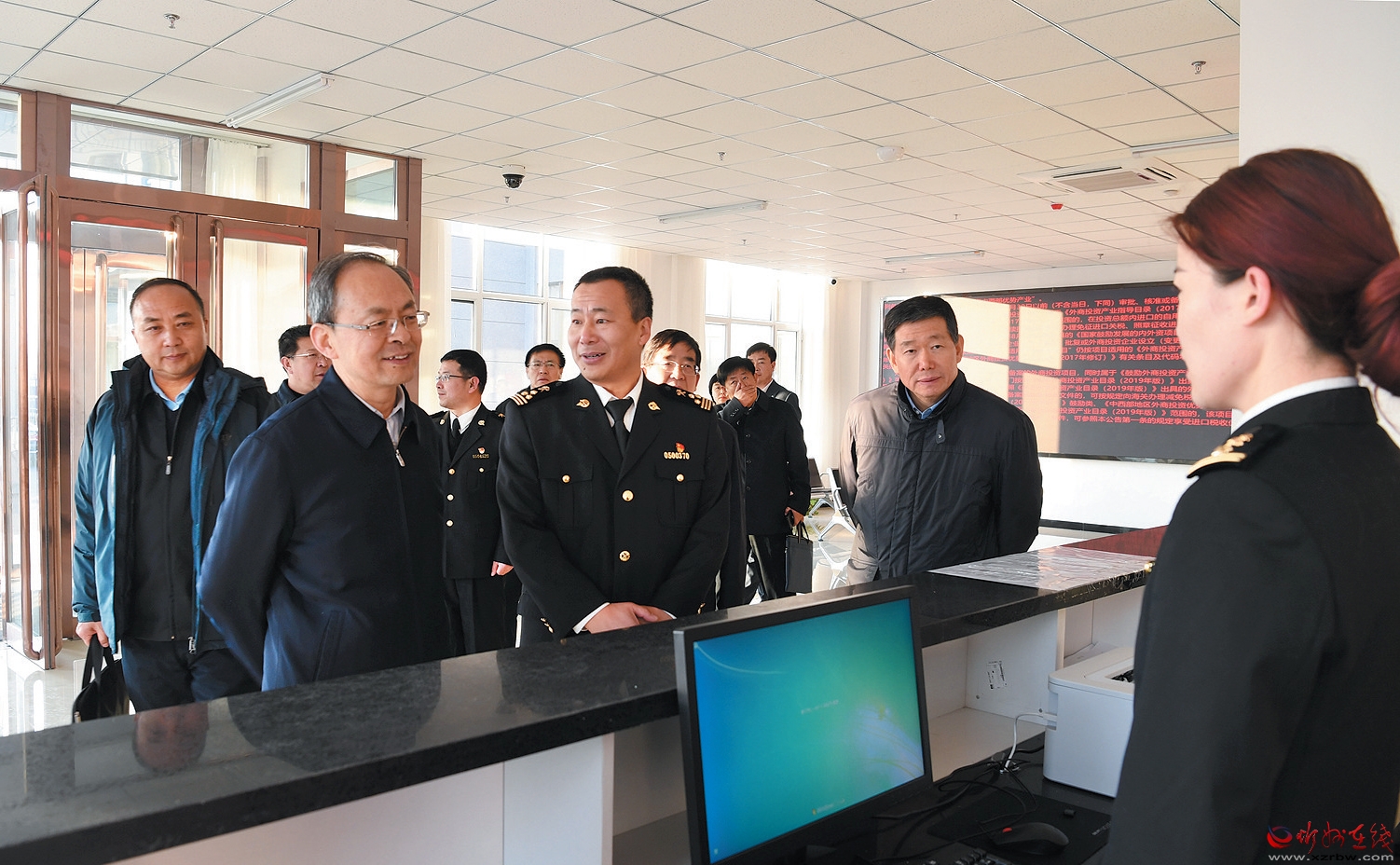 自今年10月份開(kāi)關(guān)以來(lái),忻州海關(guān)結(jié)合忻州外向型經(jīng)濟(jì)發(fā)展實(shí)際,緊緊圍繞市委市政府相關(guān)工作部署,積極為忻州外貿(mào)穩(wěn)定發(fā)展服務(wù),保障產(chǎn)業(yè)鏈供應(yīng)鏈穩(wěn)定,打造忻州對(duì)外開(kāi)放平臺(tái),筑牢國(guó)家安全屏障,為促進(jìn)忻州經(jīng)濟(jì)高質(zhì)量轉(zhuǎn)型發(fā)展作出了貢獻(xiàn)。在海關(guān)報(bào)關(guān)大廳,鄭連生與工作人員進(jìn)行交流,向他們了解進(jìn)出口業(yè)務(wù)開(kāi)展情況,鼓勵(lì)他們要不斷強(qiáng)化監(jiān)管、優(yōu)化服務(wù),為企業(yè)提供更高效、便捷、優(yōu)質(zhì)的服務(wù),促進(jìn)地方外向型經(jīng)濟(jì)發(fā)展。在消防控制室和實(shí)驗(yàn)室,鄭連生察看了各種專(zhuān)業(yè)設(shè)備配置運(yùn)行情況,了解了出入境檢驗(yàn)檢疫等相關(guān)工作情況。他希望忻州海關(guān)繼續(xù)著眼經(jīng)濟(jì)社會(huì)發(fā)展大局,弘揚(yáng)海關(guān)優(yōu)良作風(fēng),發(fā)揮海關(guān)職能作用,創(chuàng)新海關(guān)監(jiān)管制度,依法守好國(guó)門(mén),推動(dòng)通關(guān)便利化,全面提升服務(wù)對(duì)外開(kāi)放的能力和水平,幫助企業(yè)做大做強(qiáng)。