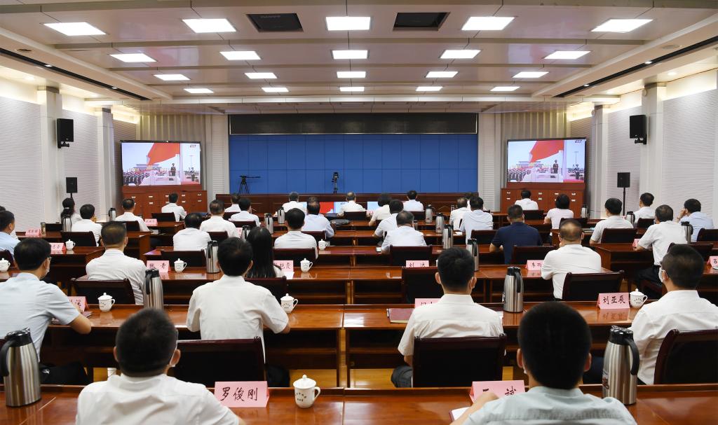 市領(lǐng)導(dǎo)集中收聽收看大會(huì)實(shí)況直播。劉紀(jì)森 攝