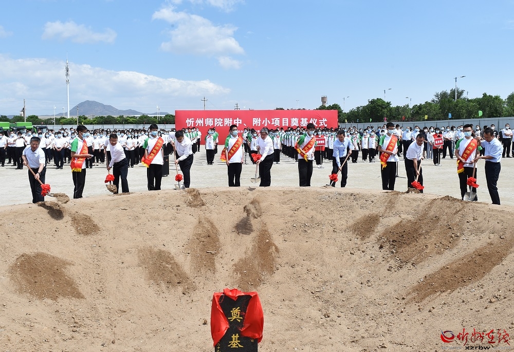 市領(lǐng)導(dǎo)為忻州師院附中、附小校區(qū)建設(shè)項目培土奠基。馮曉磊 攝 開工儀式后,朱曉東、李建國等市領(lǐng)導(dǎo)相繼為國道108線改建工程項目和忻州師院附中、附小校區(qū)建設(shè)項目培土奠基。