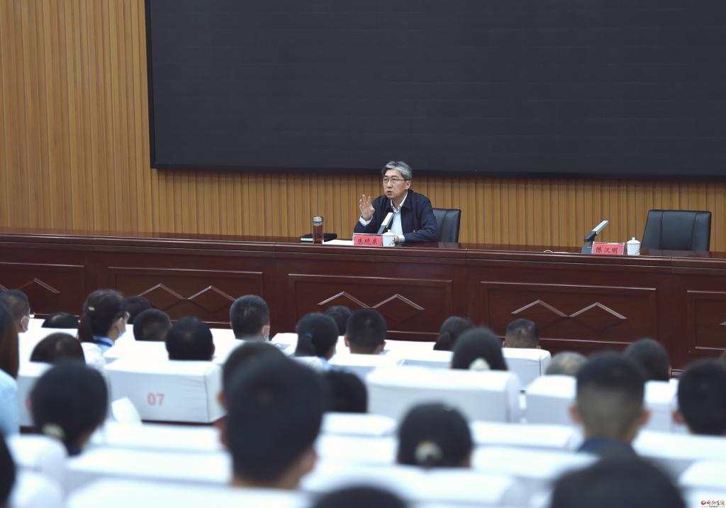 9月19日,市委書(shū)記朱曉東來(lái)到忻州一中,以“不負(fù)韶華爭(zhēng)朝夕,跑出青春加速度,爭(zhēng)做堪當(dāng)民族復(fù)興重任的時(shí)代新人”為題,給該校師生講授思政課。他寄語(yǔ)廣大青年學(xué)子要不負(fù)建功立業(yè)的人生際遇,不負(fù)“天將降大任于斯人”的時(shí)代使命,不負(fù)黨的期望、人民的期待、民族的重托,讓青春在筑夢(mèng)、逐夢(mèng)、圓夢(mèng)中綻放異彩,真正成為堪當(dāng)民族復(fù)興大任的時(shí)代新人,以更飽滿的熱情和更昂揚(yáng)的狀態(tài)迎接黨的二十大勝利召開(kāi)。市委常委、秘書(shū)長(zhǎng)、統(tǒng)戰(zhàn)部部長(zhǎng)張文偉,副市長(zhǎng)李碩參加。