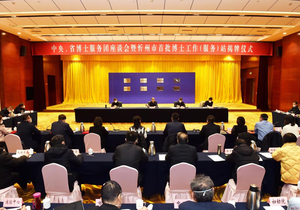 1月10日,中央、省博士服務(wù)團(tuán)座談會暨忻州市首批博士工作(服務(wù))站揭牌儀式舉行。市委書記朱曉東出席并講話。市委常委、組織部部長張敏主持,市領(lǐng)導(dǎo)崔崢嶺、王建峰出席。