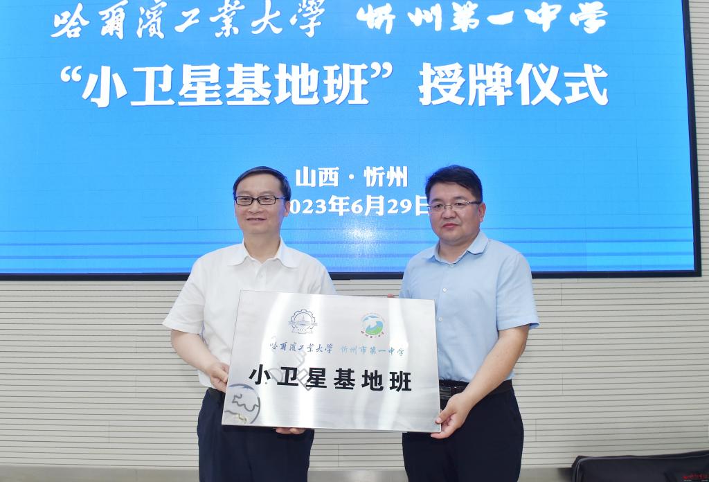 在隨后舉行的授牌儀式上,朱曉東強(qiáng)調(diào),哈爾濱工業(yè)大學(xué)“小衛(wèi)星基地班”為忻州籍學(xué)子提供了一個(gè)接觸哈爾濱工業(yè)大學(xué)、了解哈爾濱工業(yè)大學(xué)、體驗(yàn)哈爾濱工業(yè)大學(xué)的優(yōu)勢平臺。希望通過“小衛(wèi)星基地班”精心設(shè)置的課程活動(dòng),助力更多優(yōu)秀學(xué)子明確定位、開拓視野、篤定名校,為忻州乃至全省創(chuàng)新人才培養(yǎng)模式、提高人才培養(yǎng)質(zhì)量、激發(fā)更多教育引領(lǐng)的前瞻思維,讓“小衛(wèi)星”傳遞“大能量”。希望忻州一中能夠以哈爾濱工業(yè)大學(xué)“小衛(wèi)星基地班”授牌儀式為新起點(diǎn)、新標(biāo)桿,提升辦學(xué)育人的更高境界,培養(yǎng)更多具有國際視野、家國情懷、創(chuàng)新思維、攻堅(jiān)能力的未來領(lǐng)軍人才,讓“小衛(wèi)星”塑造“大格局”。希望哈爾濱工業(yè)大學(xué)能夠把創(chuàng)新成果轉(zhuǎn)化到忻州,把創(chuàng)新事業(yè)布局到忻州,把新方案、新模式、新場景、新思路實(shí)踐到忻州,打造市校合作的更多亮點(diǎn),讓“小衛(wèi)星”引領(lǐng)“大發(fā)展”。