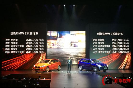 華晨寶馬汽車有限公司總裁兼首席執(zhí)行官海森博士在發(fā)布會上表示:“創(chuàng)新BMW 2系旅行車加入國產(chǎn)陣營標(biāo)志著華晨寶馬本土化進(jìn)程的又一里程碑,它定位精準(zhǔn),緊隨中國市場新的消費趨勢。創(chuàng)新BMW 2系旅行車采用創(chuàng)新的理念,將BMW特有的駕駛樂趣和我們品牌前所未見的多功能性相結(jié)合,再次證明了BMW以客戶為導(dǎo)向、提供多樣化產(chǎn)品的發(fā)展理念?!?/p>
