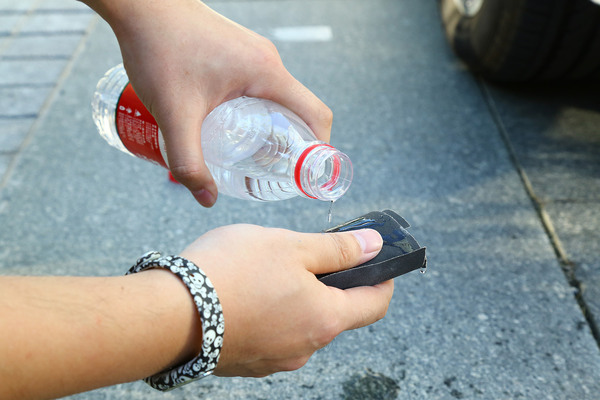 開始補漆作業(yè),先清洗劃痕位置以及周圍地方。先用800的砂紙進行打磨,墊上一塊墊木沾一些水,可以更好掌握砂紙打磨時的力度。將劃痕處的漆面以及傷痕打磨平整并再次清洗擦干。