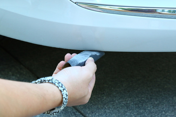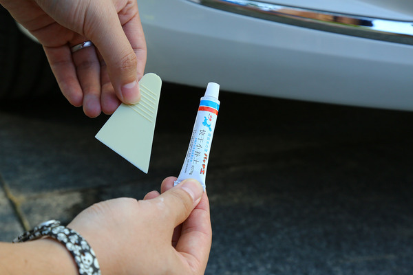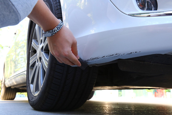 我們找來一輛前保險杠底部被蹭得面目全非的可憐車,在選擇補漆工具時要根據劃痕的情況進行合理選擇,不過就算是最嚴重的大面積傷及底漆的修補套裝,一般也不超過百元。