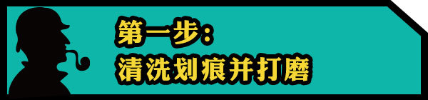 接下來要用更加精細的2000砂紙,將劃痕周圍區(qū)域也就是原來舊漆的位置進行打磨,打磨成啞光狀態(tài),并清洗干凈,以便之后劃痕周圍上漆更加均勻和牢固。