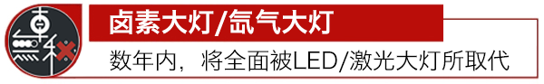 未來數(shù)年內(nèi),汽車鹵素大燈和氙氣大燈也面臨消失的威脅,隨著LED車燈技術(shù)的興起,甚至激光車燈的崛起,或?qū)⒙裨犭瘹獯鬅簦驗槠錈艄庑Ч?,同時更節(jié)能。