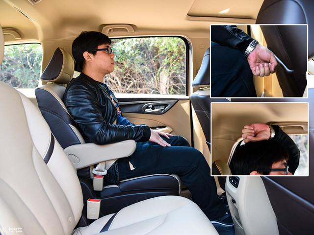 保持前排座椅不動,同一體驗者來到第二排,頭部空間同樣剩余一拳多,腿部空間也是一拳有余。