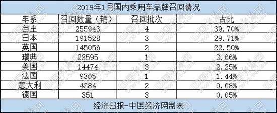 其中,1月,因“高田氣囊”事件,共有280105輛汽車(chē)被召回,占召回總量的43.45%;此外,以車(chē)系來(lái)看,自主品牌共召回汽車(chē)255943輛,占總量的39.70%,數(shù)量最多。