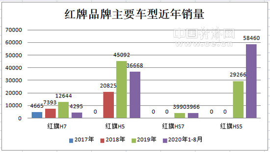 2019年7月、8月,紅旗HS7、純電動(dòng)SUV車型E-HS3接踵而至。其中,紅旗HS7雖然只提供了3.0T+8AT一種動(dòng)力選擇,但在2019年也貢獻(xiàn)了近4000輛的銷量。這足以證明紅旗HS7的市場潛力。HS7、HS5以及E-HS3的集中上市,不僅讓紅旗快速彌補(bǔ)了在車型矩陣上的短板,更讓其實(shí)現(xiàn)了銷量里程碑式的突破。2019年,紅旗銷量突破10萬輛達(dá)100166輛,同比大幅增長203%。