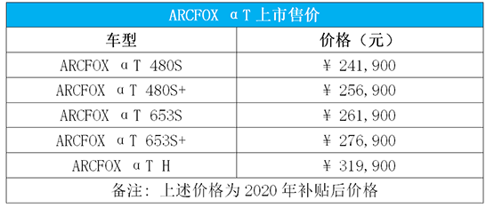 10月24日,高端智能新能源汽車品牌ARCFOX極狐在北京首鋼園舉辦“甭設限探索日”,同步宣布首款量產車型ARCFOX極狐αT售價。新車擁有480/600/653km三種續(xù)航版本五款車型,售價24.19-31.99萬元,今年內購車更可享受3年0利率或首付15%低息貸款禮遇,另外置換購車用戶還可享受最高1.5萬元補貼。