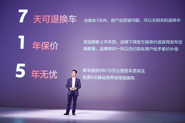“買車放心”,開創(chuàng)性地推出“7·1·5”三項服務(wù)政策,即“7天可退換車”“新車承諾1年保價”“新車質(zhì)保5年無憂”。消費者在購車7天內(nèi),因產(chǎn)品質(zhì)量問題,可以無損失的退換車;雙品牌新上市車型,品牌下調(diào)官方指導(dǎo)價,或官網(wǎng)發(fā)布促銷政策,將對1年以內(nèi)已購車用戶給予差價補償;新車至高享受5年/15萬公里整車質(zhì)保+免費6次基礎(chǔ)保養(yǎng)(或可選擇增值換購禮),遠高于三包標準和行業(yè)水平。