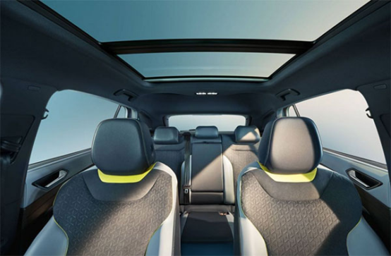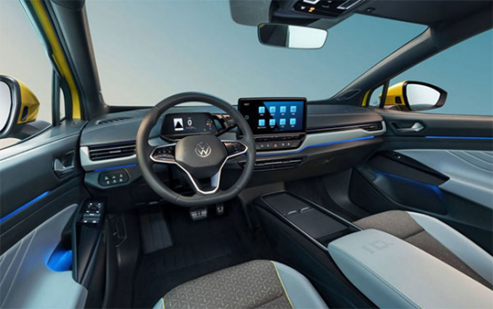 ID.4長寬高分別為4,592 mm x 1,852mm x 1,629 mm,軸距為2,765 mm。受益于MEB架構(gòu),ID.4車內(nèi)空間十分寬敞,全景玻璃車頂讓車內(nèi)更加通透。內(nèi)飾所運(yùn)用的色彩和材料極具現(xiàn)代感,懸浮式的儀表盤與中控臺采用獨(dú)立式的設(shè)計(jì),體現(xiàn)出極簡風(fēng)格。另外,車輛還設(shè)有可自定義的30色背景氛圍燈,為內(nèi)飾增色不少。