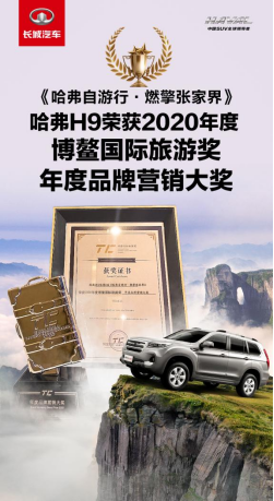 11月21日,中國·博鰲國際旅游獎(TC獎)揭曉,《哈弗自游行 燃擎張家界》項(xiàng)目榮獲2020年度中國·博鰲國際旅游獎年度品牌營銷獎。哈弗H9與張家界政府簽署的戰(zhàn)略合作協(xié)議,圍繞自駕游出行場景,合力打造“最佳自駕游目的地”。