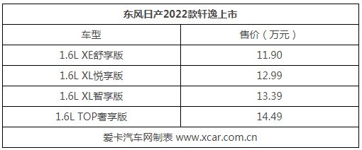 | 2022款軒逸正式上市 售11.9-14.49萬元 |