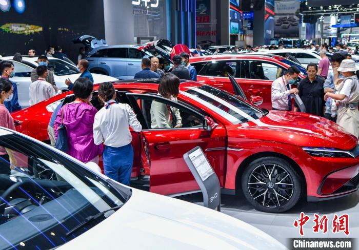今年舉辦的第8屆海南國際新能源·智能汽車展覽會上,國產新能源汽車吸引眾多市民圍觀。(資料圖) 駱云飛 攝