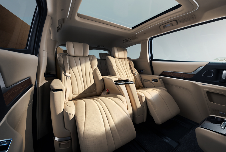 別克世紀(jì)CENTURY七座臻享款采用“2+2+3”座椅布局,搭載創(chuàng)新的二三排共用縱向電動(dòng)長(zhǎng)滑軌設(shè)計(jì),可以讓二/三排座椅分別實(shí)現(xiàn)超長(zhǎng)行程的電動(dòng)前后移動(dòng)。其第二排配備高級(jí)打孔真皮航空座椅,支持14向全電動(dòng)調(diào)節(jié)、椅背最大可調(diào)節(jié)至171度、3檔加熱/通風(fēng)/位置記憶、10點(diǎn)式按摩功能,并囊括一體展開(kāi)式電動(dòng)腿托和電動(dòng)無(wú)級(jí)調(diào)節(jié)腳踏、翻折小桌板、無(wú)線(xiàn)充電手機(jī)槽,內(nèi)側(cè)扶手集成的滑動(dòng)式6吋智能觸控屏還可對(duì)座椅、車(chē)窗、后排天窗遮陽(yáng)簾、空調(diào)進(jìn)行控制。第三排劇院式座椅寬綽舒適,可供3位成年人從容乘坐,下翻式中央扶手可4/6分單獨(dú)調(diào)節(jié)、椅背最大傾斜角度達(dá)132度、且座墊支持電動(dòng)翻折。當(dāng)座墊折起時(shí),第三排可進(jìn)行前后720mm超長(zhǎng)行程電動(dòng)滑動(dòng),實(shí)現(xiàn)靈活高效的空間利用。