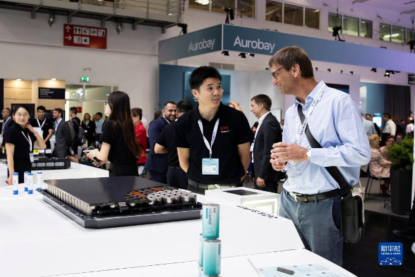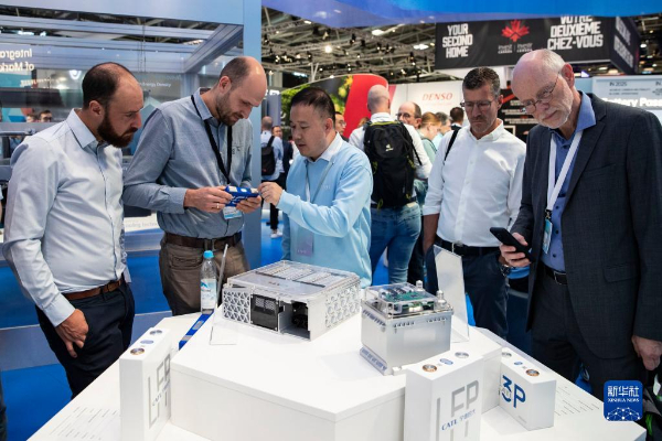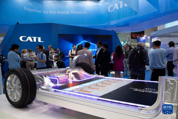 9月5日,人們在德國慕尼黑國際車展的寧德時代展區(qū)咨詢洽談。