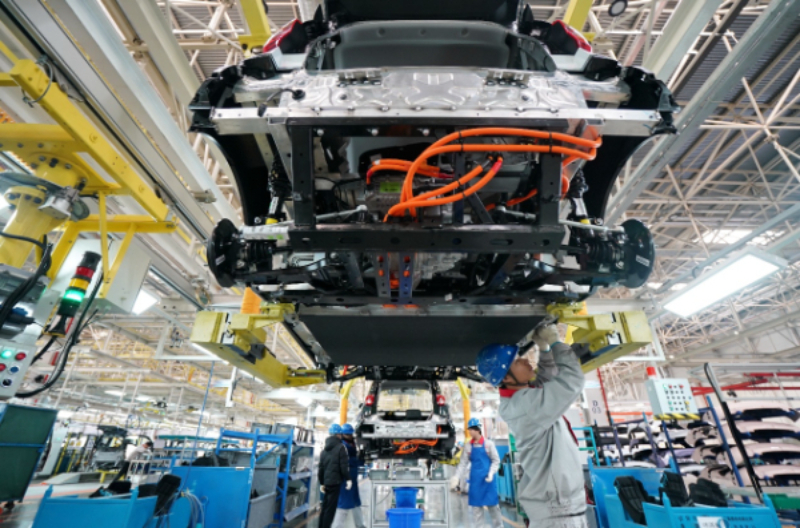 奇瑞新能源汽車(chē)股份有限公司石家莊分公司的工人在總裝車(chē)間生產(chǎn)線上工作(資料圖片 新華社記者 牟宇 攝)