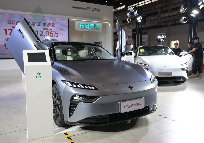 在車展上東風奕派展臺拍攝的“eπ007”。(9月16日攝)新華社記者 蒲曉旭 攝