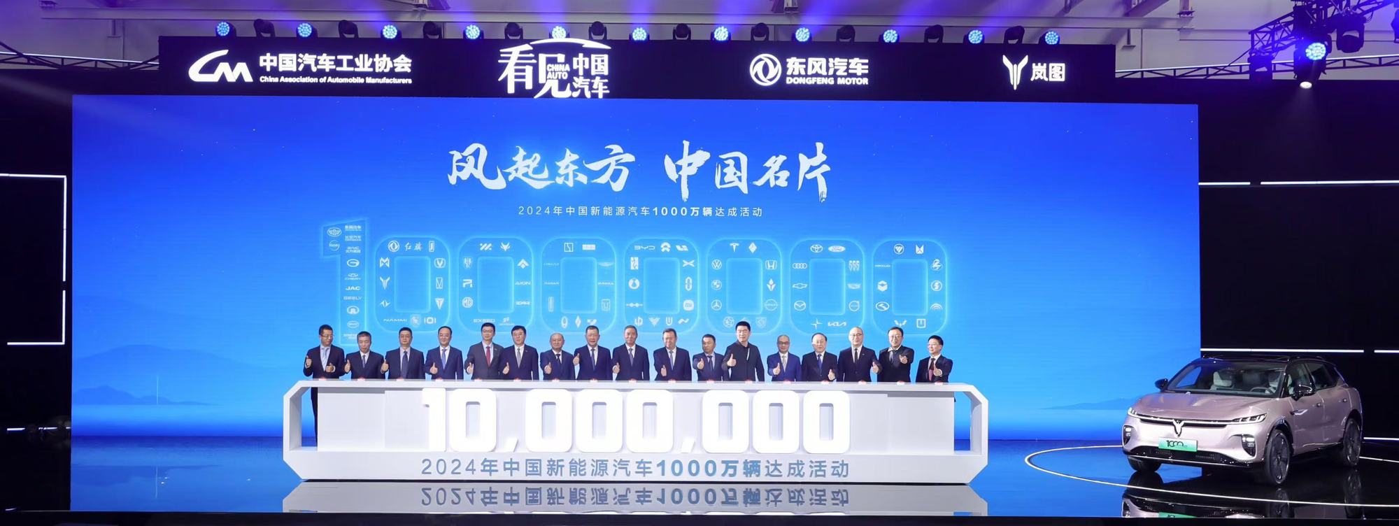 11月14日,在中華人民共和國工業(yè)和信息化部指導(dǎo)下,由中國汽車工業(yè)協(xié)會主辦,東風(fēng)汽車集團(tuán)有限公司(以下簡稱東風(fēng)汽車)承辦的2024年中國新能源汽車1000萬輛達(dá)成活動在東風(fēng)嵐圖云峰工廠盛大舉行,嵐圖知音作為1000萬輛中國新能源汽車下線車型。