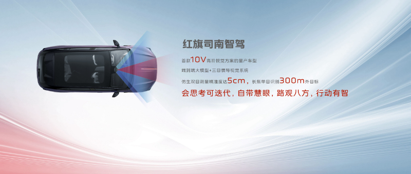 智行無(wú)疆,慧領(lǐng)八方,天工08搭載了紅旗司南高階智駕系統(tǒng)。作為行業(yè)首發(fā)10V高階視覺(jué)智駕方案的量產(chǎn)車型,基于端到端的大模型,首創(chuàng)三目慣導(dǎo)立體視覺(jué)系統(tǒng),仿生雙目可精確鎖定目標(biāo)的立體形狀和空間位置,測(cè)量精度達(dá)到5厘米;長(zhǎng)焦單目則能識(shí)別300米以外的目標(biāo),保障高速場(chǎng)景的安全性。并通過(guò)OTA實(shí)現(xiàn)功能持續(xù)迭代升級(jí),讓天工08既會(huì)觀察也會(huì)思考,既能明察全局,也能行動(dòng)有智。不僅如此,天工08擁有高速NOA功能,支持自主超車變道、連續(xù)上下匝道、復(fù)雜分叉道路選擇準(zhǔn)確車道行駛等高速全場(chǎng)景領(lǐng)航輔助,百公里接管次數(shù)不到0.5次,實(shí)現(xiàn)高速全場(chǎng)景,長(zhǎng)途愜意行。