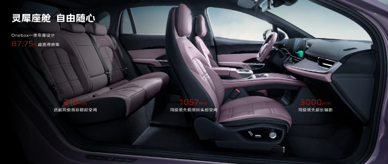 天工08致力于為用戶提供大空間極致舒享體驗(yàn)。它擁有同級(jí)領(lǐng)先的87.75%得房率、前后排1057mm的超大頭部空間、遠(yuǎn)超同級(jí)的210mm二排膝部空間,身高1.8m的用戶坐在后排也可實(shí)現(xiàn)腿部活動(dòng)自由,全家出行、一路暢享。